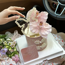 514中式母亲节蛋糕装饰妈妈旗袍衣襟围边蝴蝶兰插件爱你妈妈插牌