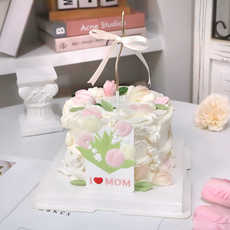 网红母亲节蛋糕装饰妈妈我爱你插牌亚克力绽放郁金香仿真花朵插件