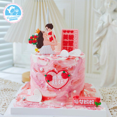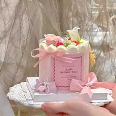 网红ins蛋糕装饰母亲节快乐粉色贴纸唯美蝴蝶结丝带妈妈生日插件