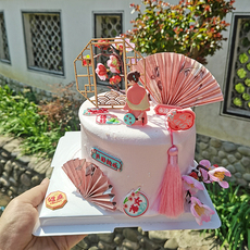 母亲节新中式蛋糕装饰摆件软胶旗袍领扣插件女神妈妈生日派对配件