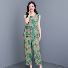 2026新款国风高端棉绸套装中年洋气妈妈夏装短袖宽松大码两件套
