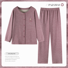 德绒睡衣女春秋加厚保暖长袖圆领开衫妈妈款秋冬季薄绒高级感套装