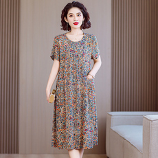 2026新款高端大气棉绸连衣裙夏季大码年轻款漂亮妈妈裙子宽松显瘦