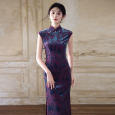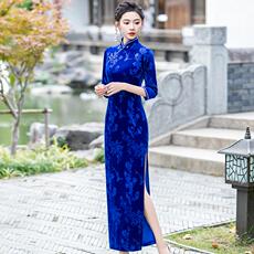 老上海传统金丝绒印花旗袍女中国风高端优雅大气改良日常走秀演出