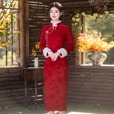 冬款旗袍长袖加绒加厚2025新款红色过年小袄拜年服改良连衣裙优雅