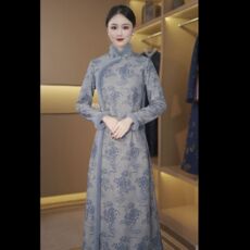 【蓝微】苏州正品冬季加绒保暖新款优雅气质文艺日常奥黛改良旗袍