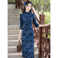 2025年秋冬新款女旗袍优雅复古金丝绒高端弹力新中式年轻款七分袖