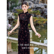 新中式复古国风改良丝绒旗袍2026年春夏新款气质高端收腰显瘦优雅