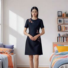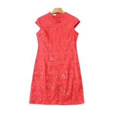 新中式立领刺绣旗袍 夏季新款时尚修身连衣裙女优雅百搭短裙01104