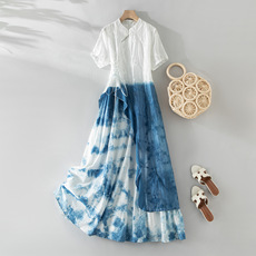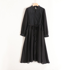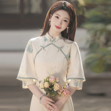 清妍 清仓春秋天丝棉麻绣花文艺复古修身改良奥黛旗袍优雅连衣裙