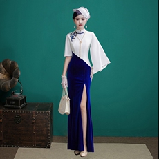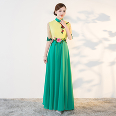 2026新款多色走秀演出服端庄优雅妈妈改良旗袍裙长款修身连衣裙夏