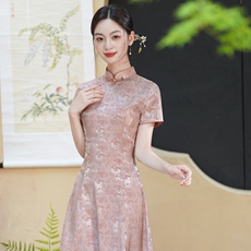 粉色喜妈妈婚宴礼服日常可穿优雅气质新娘订婚丈母娘旗袍裙高级感