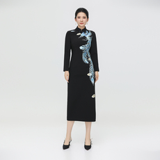 秋冬小香款旗袍连衣裙 刺绣花新中式长袖假两件 国风优雅款