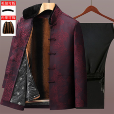 男士唐装中老年加绒可拆卸内胆防寒活里活面套装爸爸爷爷冬装外套