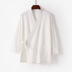 春秋汉服开衫系带禅修茶服中国风仙气道袍唐装居士服大码棉麻套装