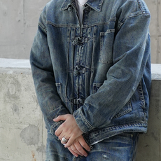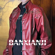 半闲集<天官赐福>酒红色植绒牛仔唐装复古中国风外套新中式男装