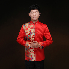 新中式男士订婚西装国风唐装中山装演出服新郎结婚礼服西服套装潮
