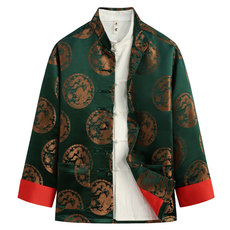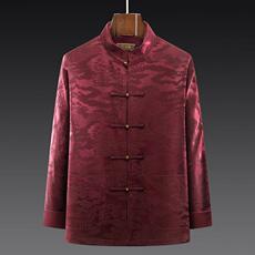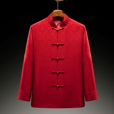 高档桑蚕丝中年连袖唐装春秋外套中国风中式宴会喜爸爸唐装外套