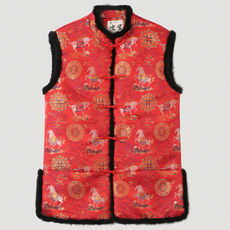 新中式风男士唐装马甲棉袄男中国风红色本命年水貂领盘扣坎肩棉服