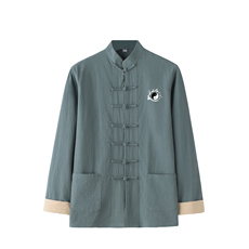棉麻两面穿唐装休闲中国风外套太极服情侣男女士立领盘扣汉服春秋