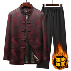 唐装男中老年冬季外套爸爸装中国风老人生日过寿爷爷加绒加厚棉衣