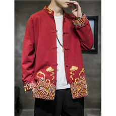 春季中国风男装中式华服夹克斜襟汉服民族服复古立领唐装外套马褂