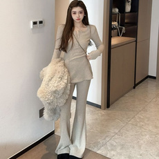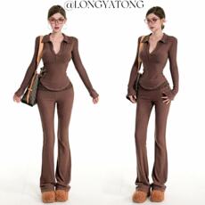 龙牙童推荐【穿搭教科书】气质时尚显瘦长袖长裤套装修身弹力秋冬