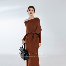 秋冬女2025年新款长袖连衣裙套装休闲气质宽松显瘦针织两件套裙子