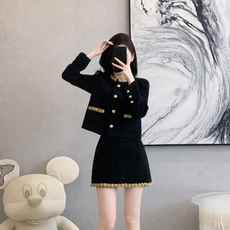 菲梦伊小香风时尚套装女秋季名媛修身气质西装上衣亮片黑色蛋糕裙