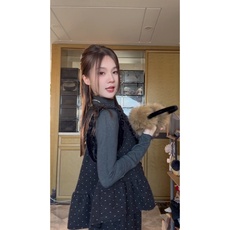 港味少女时尚波点气质斜肩无袖上衣+包臀半身裙两件套辣妹套装 潮