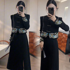 秋季2025年新款黑色穿搭一整套裙子两件套气质宽松大码时尚套装裙