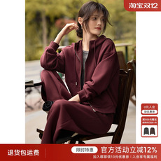 XWI欣未时尚气质安可拉红套装女秋季连帽卫衣休闲直筒裤两件套
