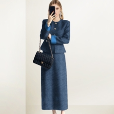 时尚小香风毛呢套装女2024新款洋气气质短款外套连衣裙两件套