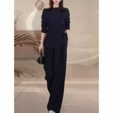 2025春秋新款丝绒藏蓝色流苏时尚气质女装主持大牌阔腿裤面试套装