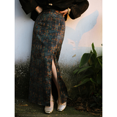 真大鱼大小码【古文】新中式国风甲骨文复古提花开叉半身裙a字裙