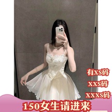 加小码春装女装显高150cmXXXS小个子蕾丝拼接吊带连衣裙女蓬蓬裙
