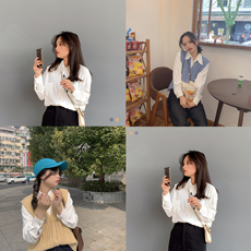 PERRY自制 不易皱垂垂衬衫~小个子长袖通勤小尖领小码xxs150