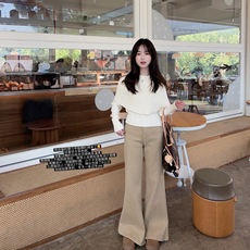 秋冬加厚小个子软糯百搭针织阔腿裤女宽松显高150xs小码休闲长裤