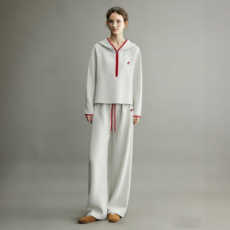 pusumede 自在起居 抓绒连帽拉链运动卫衣外套女休闲针织卫裤套装