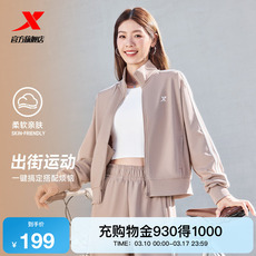 特步运动套装女士春季新款休闲百搭针织外套运动长袖上衣卫裤长裤