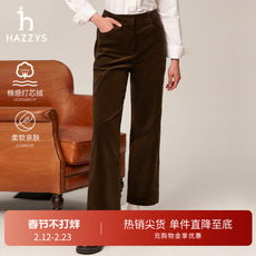 Hazzys哈吉斯灯芯绒裤子秋冬舒适时尚休闲裤直筒棕色长裤女士下装