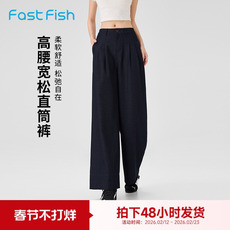 快鱼女士阔腿牛仔裤2025夏季新款高腰阔腿裤宽松舒适松弛感女下装