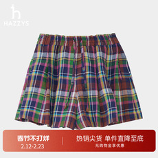 Hazzys哈吉斯休闲格子短裤女士夏季休闲时尚百搭亚麻运动裙裤下装