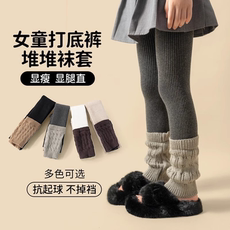 Elfairy儿童打底裤女童加绒裤子秋冬外穿拼接袜套宝宝一体绒卫裤