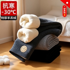 秋冬女内穿高腰加绒加厚双面德绒秋裤羊毛蚕丝发热打底保暖棉裤子