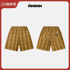 PAPASLILMONSTER美式夏季休闲运动短裤男刺绣细格纹速干短裤潮