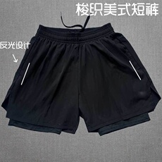 夏季防走光田径训练短裤反光马拉松三分速干训练假两件透气运动裤