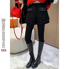 灰色毛呢短裤女冬季2024韩版辣妹包臀呢子靴裤高腰百搭打底三分裤