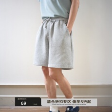 速写男装官方旗舰五分裤夏季新款一片裁纯色宽松直筒男士中短裤子