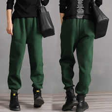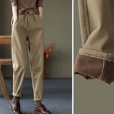 冬季加绒加厚保暖裤女外穿哈伦裤妈妈裤子女宽松大码休闲裤直筒裤